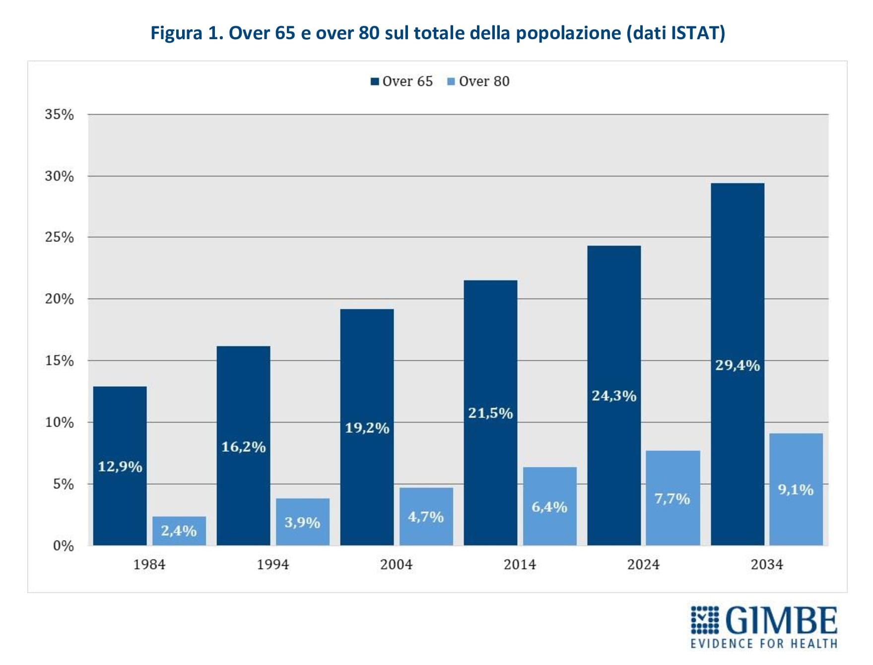 Quadro demografico. «I criteri per definire il numero massimo di assistiti per MMG – spiega Cartabellotta – non hanno mai considerato l’evoluzione demografica degli ultimi 40 anni, né oggi tengono presenti le proiezioni per il prossimo decennio». Infatti, la percentuale di residenti di età ≥65 anni è quasi raddoppiata, passando dal 12,9% (7,29 milioni) nel 1984 al 24% (14,18 milioni) nel 2024. Ancora più marcato l’aumento degli over 80, la cui prevalenza è più che triplicata: dal 2,4% (1,4 milioni) del 1984 al 7,7% (4,5 milioni) nel 2024. Questa tendenza è confermata dalle previsioni ISTAT per il 2034, quando gli over 65 rappresenteranno il 29,4% della popolazione (17,04 milioni) e gli over 80 saliranno al 9,1% (5,28 milioni)