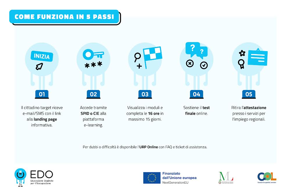 Il progetto EDO inserisce nel Programma GOL del PNRR un’offerta formativa digitale gratuita, inclusiva e certificata che risponde a tre sfide: