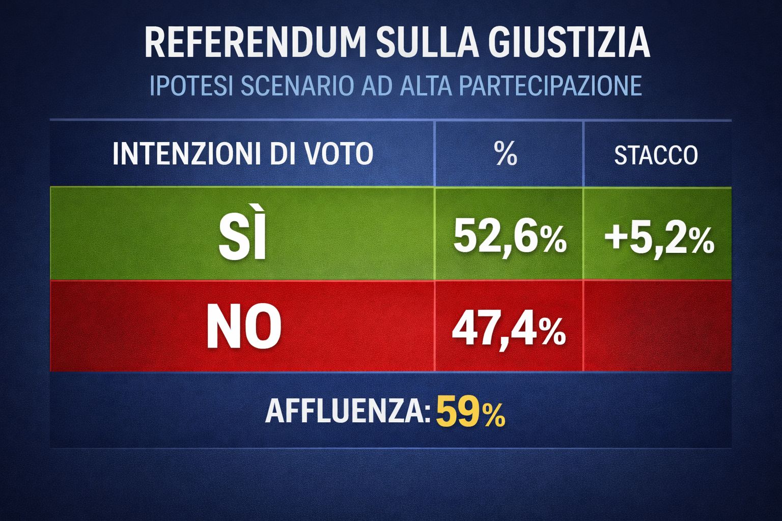 10 Febbraio 2026Il Sì al referendum sulla giustizia torna a crescere nei sondaggi, al 52,5%. Il No si ferma al 47,5%. Ecco nel dettaglio che cos’è emerso dall’ultimo sondaggio Eumetra.