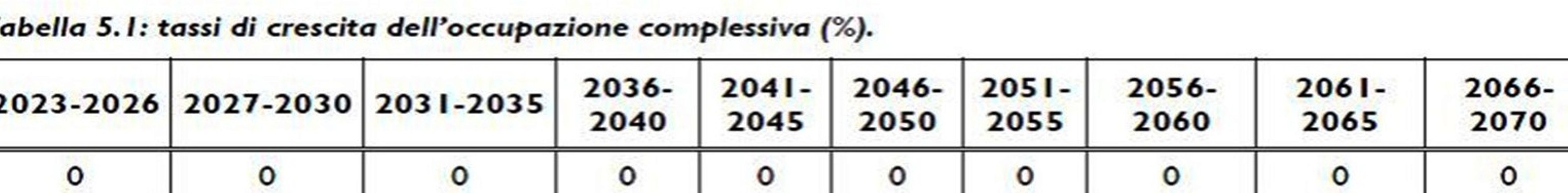 dal 2034 è stato ipotizzato un tasso annuo di crescita dell’occupazione complessiva pari allo 0% e, dunque, un’ipotesi di stazionarietà della collettività degli iscritti contribuenti al livello raggiunto sull’anno 2023.