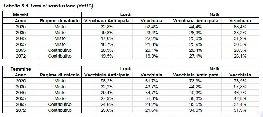 a cui corrisponde un tasso di sostituzione netto del 41% per la carriera lenta, del 32% per quella media e 23% per quella veloce.