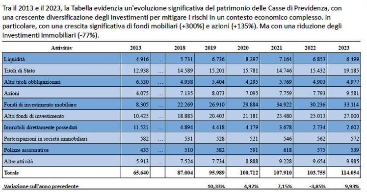 L’evoluzione del patrimonio delle casse di previdenza dei professionisti dal 2013 al 2023