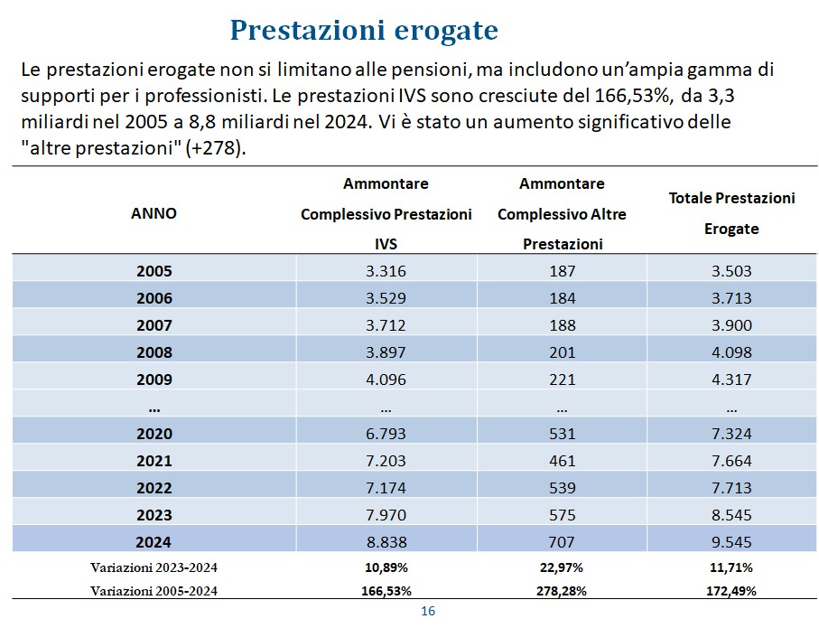 “Dal 2005 al 2024, c’è stato un incremento significativo delle entrate contributive e delle prestazioni erogate.