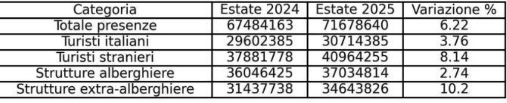 Incremento del 6,22% di turisti nell’estate 2025