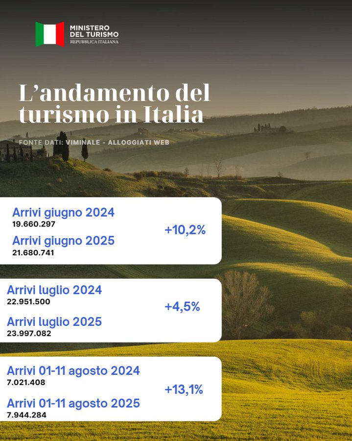 Firenze, Roma, Venezia e le città minori hanno beneficiato di una domanda internazionale forte, con 38,5 milioni di arrivi dall’estero complessivi, a conferma della centralità culturale del nostro Paese.
