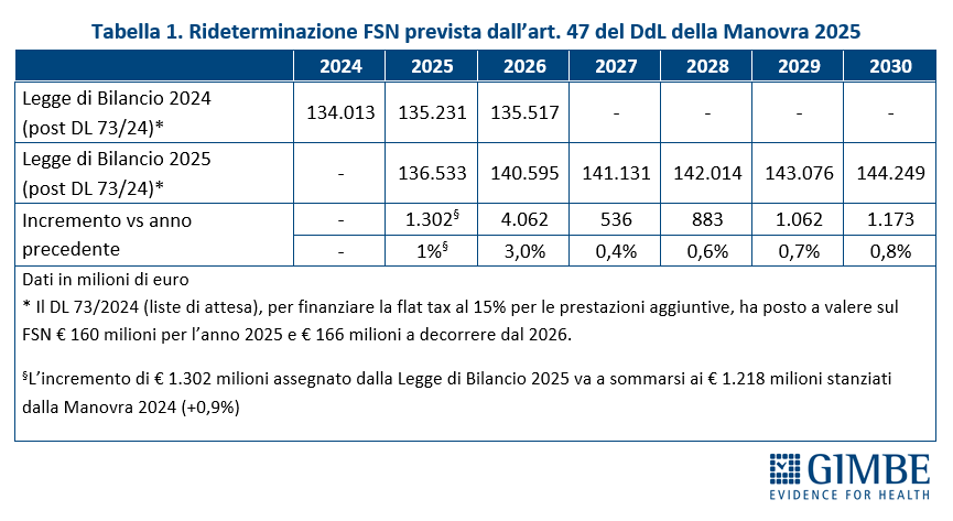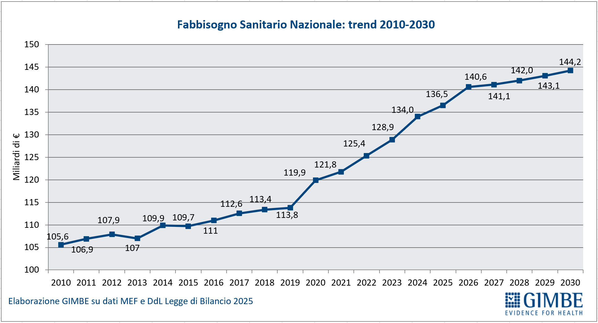 Secondo il DdL sulla Manovra 2025, il Fondo Sanitario Nazionale (FSN) raggiungerà € 136.533 milioni nel 2025, € 140.595 milioni nel 2026 e € 141.131 milioni nel 2027