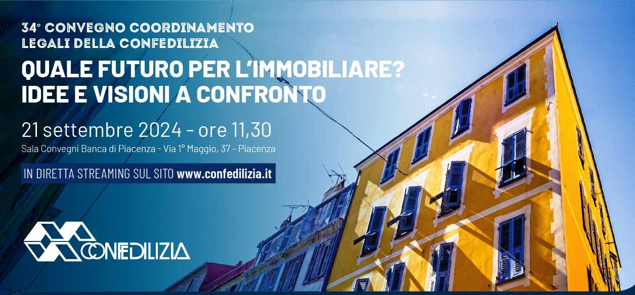 In occasione del 34° convegno del Coordinamento legali della Confedilizia, il prossimo 21 settembre – alle 11,30 – si terrà a Piacenza un dibattito dal titolo “Quale futuro per l’immobiliare? Idee e visioni a confronto”.