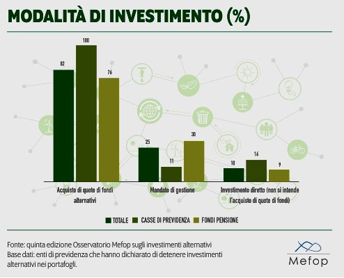 I dati del quinto Osservatorio Mefop sugli investimenti alternativi delle casse di previdenza, dei fondi pensione e dei fondi sanitari evidenziano che gli enti di previdenza dei liberi professionisti rappresentano il principale detentore di asset non tradizionali, con un patrimonio investito in tali strumenti pari a circa il 30% delle attività finanziarie complessivamente detenute.