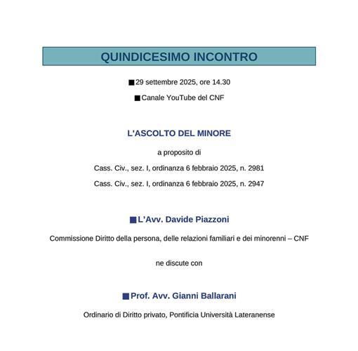 Quindicesimo incontro 29 settembre 2025, ore 14.30