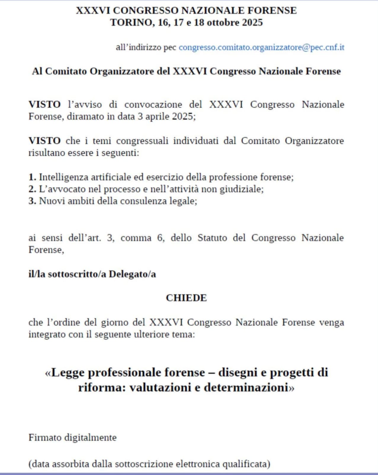 Richiesta di integrazione dell’ordine del giorno del Congresso Forense