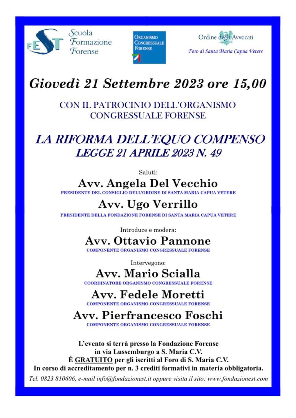Oggi, a Santamaria Cpua Vetere si svolgerà un convegno sull’equo compenso-Con il patrocinio di Ocf, parteciperanno il Coordinatore Ocf Avv. Mario Scialla, e i componenti Ocf Avv. Ottavio Pannone, Avv. Fedele Moretti e Avv. Pierfrancesco Foschi.