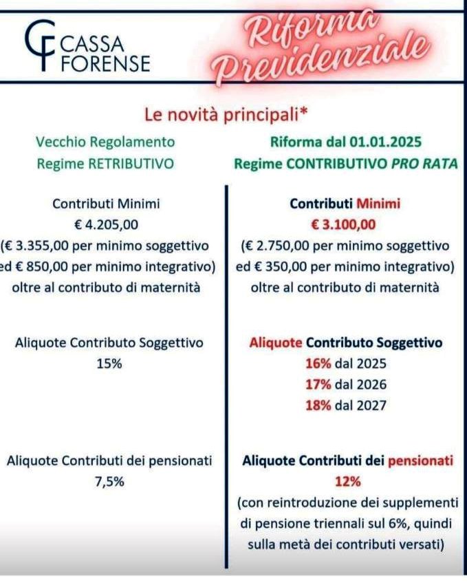 Tra le principali modifiche introdotte vi è “il passaggio al sistema contributivo”, giacché a partire dal 1° gennaio 2025, è prevista l’introduzione di questo sistema di calcolo “pro rata” delle prestazioni pensionistiche degli avvocati.