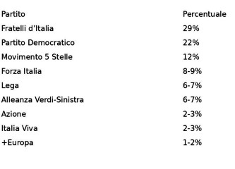 - FdI è primo partito con margine stabile