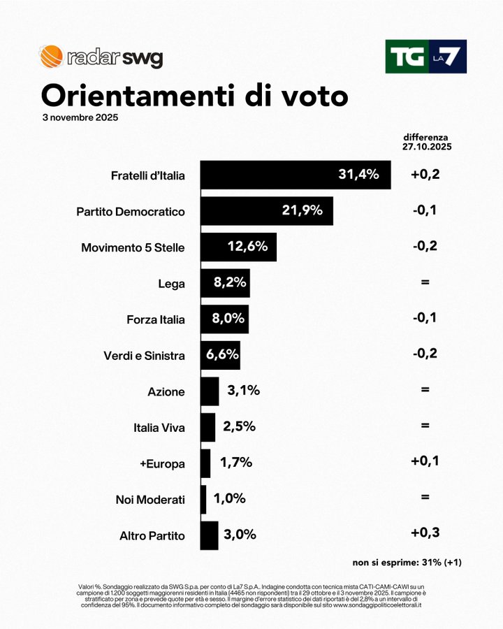 31 Ottobre 2025FdI il miglior partito M5S il peggiore.