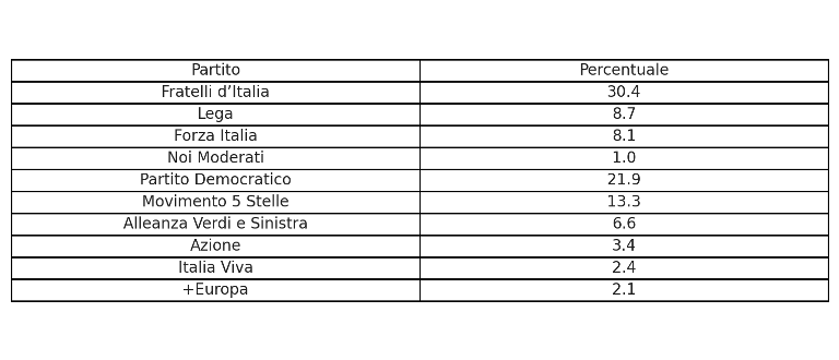 Diversa la situazione per i partiti di opposizione. Il Partito Democratico scende al 21,9%, con un calo che lo allontana ulteriormente dal distacco con la maggioranza. Anche il Movimento 5 Stelle perde terreno e si ferma al 13,3%, mentre Alleanza Verdi e Sinistra arretra al 6,6%.