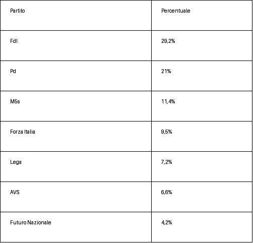 Se si votasse per il rinnovo del Governo, ad oggi FdI scenderebbe al 29,2%, perdendo un 1,1% di elettori di destra che migrerebbero verso Vannacci: al secondo posto il Pd resta in stallo al 21%, così come il M5s all’11,4%. Forza Italia di Tajani scende al 9,5% mentre la Lega di Salvini, orfana del generale, ridurrebbe i danni con un calo di consensi fino al 7,2%, rispetto all’8,1% che avrebbe in caso di frattura ricomposta (ormai impossibile visti gli annunci del 3 febbraio). AVS al 6,6% rimarrebbe davanti a Futuro Nazionale, che al suo esordio otterrebbe subito un 4,2% di voti potenziali nel campo del Centrodestra.